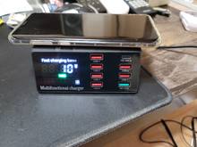 Presents the as firmly, charging shows naprzemian with several ports, differences vis indication charger display meter approx. 0,2V and about 0.2A. Meter shows lower value when 2 devices. Podpiętych Zobaczę as it will look at a larger number of devices simultaneously. Ordered 16.09 provided to Africa, Brisbane 28.09 IE 12 days. Time very good. Recommend salesman and charger.