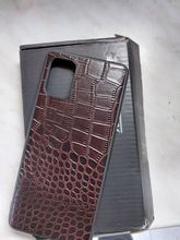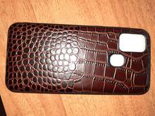 The cover is the same as in the photo. Genuine Leather. Purchase satisfied