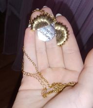 Подвески красивые, красивого золотого цвета. Цепочка тонковата но надеюсь не порвётся. Из минусов хочу отметить что цветок не закрывается полностью. В целом товаром довольна, доставка 3 недели.